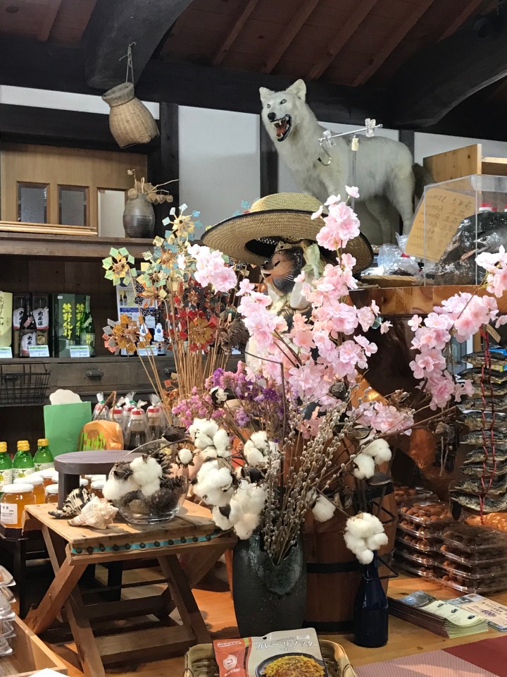 We have arrived at the minshuku we will stay at tonight. It seems a little irreverent to be partaking in a beer at this time while these gorgeous mountains surround us and while we are preparing to walk an ancient pilgrimage, but I guess with the J-pop pumping from the speakers and the surrounding strange paraphernalia (ie a poorly taxidermied ?wolf, deer antlers, drying plums), a beer and a pilgrim is not as obscure by comparison.